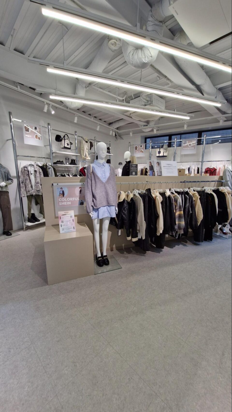 Instead it’s a space that showcases a curated selection of products, which each have a QR code beside them that you can scan in the Shein app to place an order to your home or office.