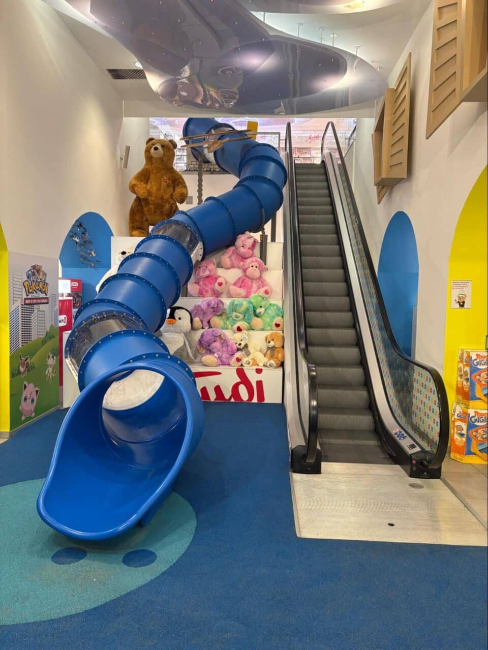 There’s a massive slide that dominates the centre of the store, which is constantly busy. There’s a huge, multi-sensory play area. There’s a remarkably big, sit-on train ride.