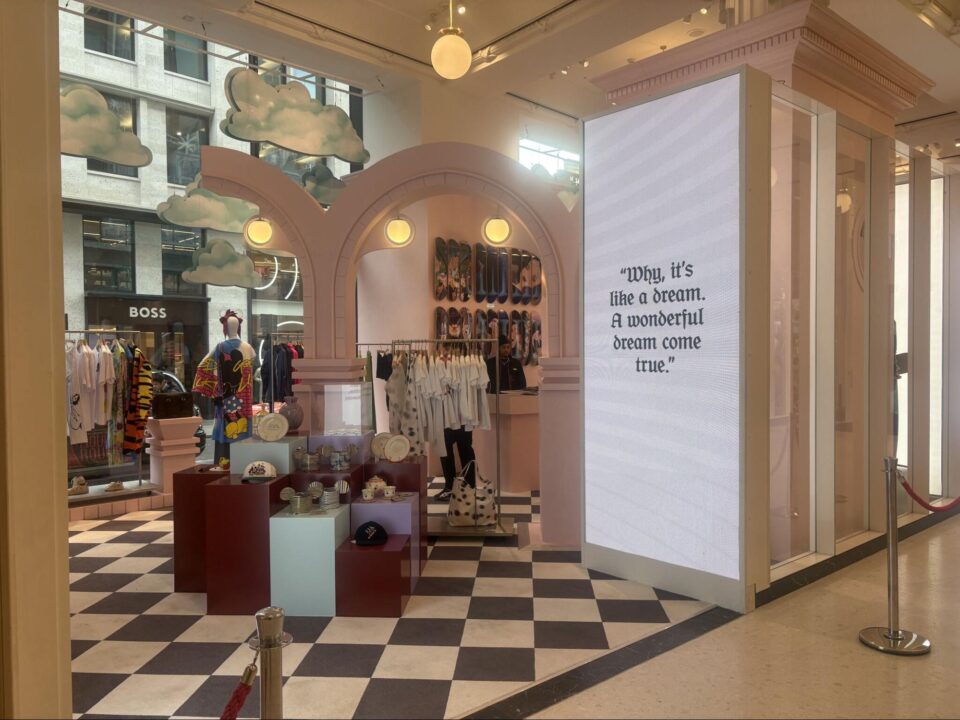 Selfridges and Disney collaborated on a Christmas pop-up in London’s Oxford Street, with a huge light display featuring iconic Disney characters and motifs, such as Tinker Bell’s pixie dust and Cinderella’s carriage. The display included music, concept art and interactive windows featuring Disney characters for customers to discover.