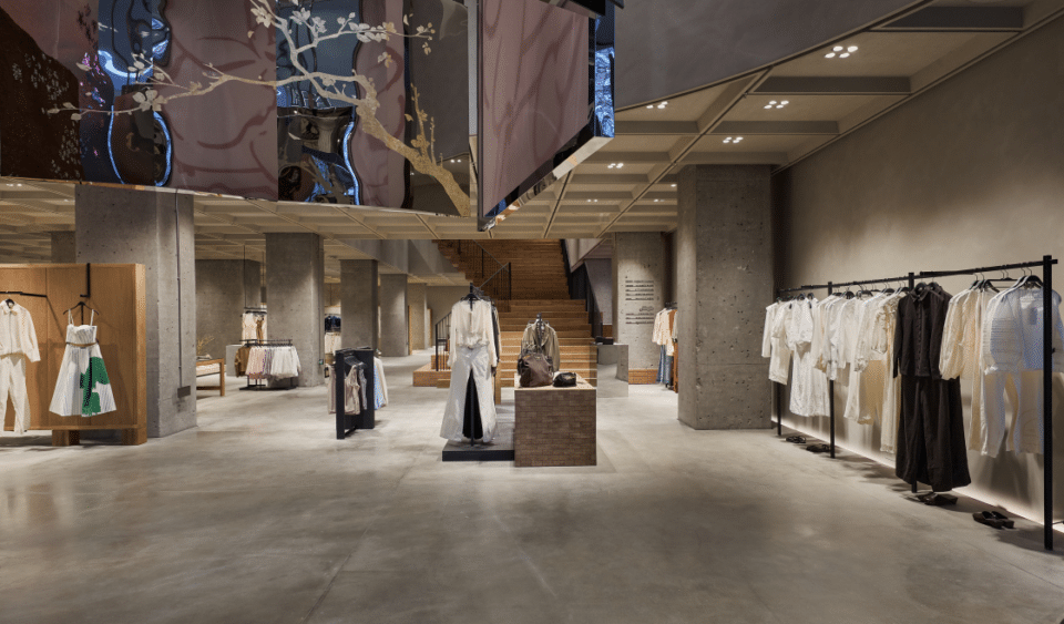 The design of the store is centred around changing themes, such as art installations, seasons and the circadian rhythm. The brand wanted to create a living building that can adjust depending on the people and the environment.